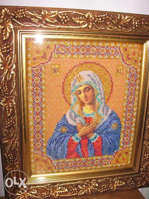 Вышивка бисером. Готовая работа. Икона Богородица Умиление