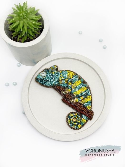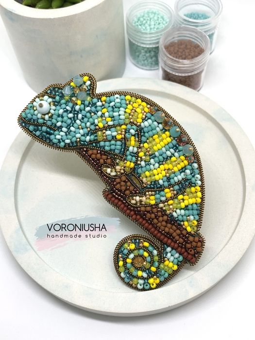 брошь из бисера хамелеон своими руками