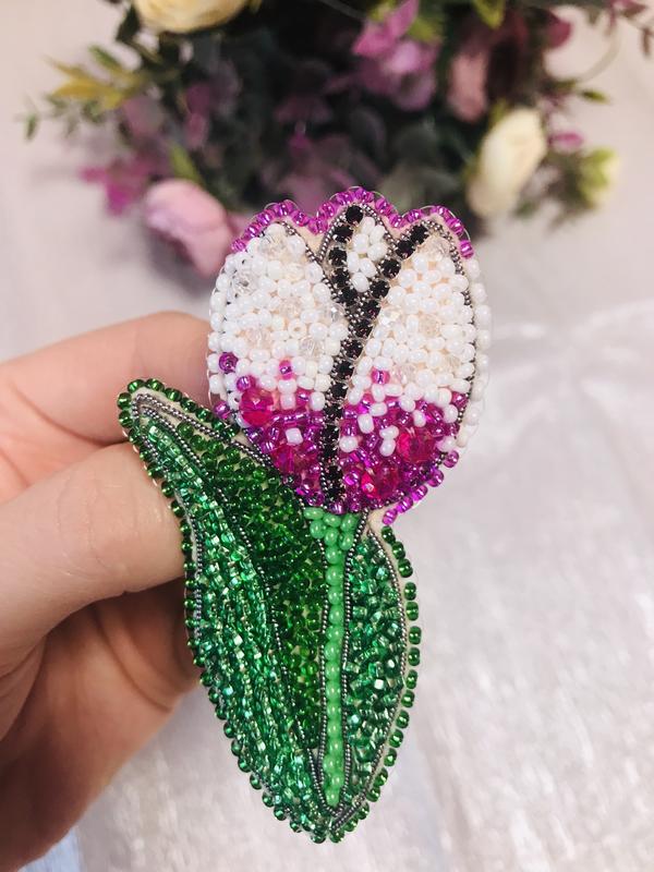 Идеальный акцент для вашего образа: брошь в виде тюльпана из бисера