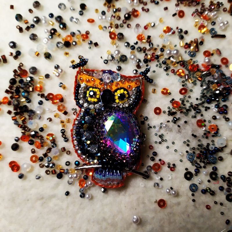 Брошь Сова. Как вам результат? #брошьизбисера #брошьручнойработы