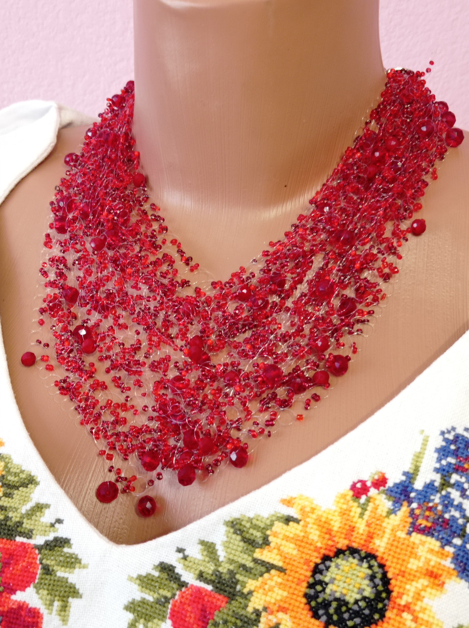 Выберите качественные материалы: красный бисер разного размера и формы, аксессуары для бижутерии (застежки, цепочки и т.д.), основы для украшений (подвески, заготовки для серег и кулонов).