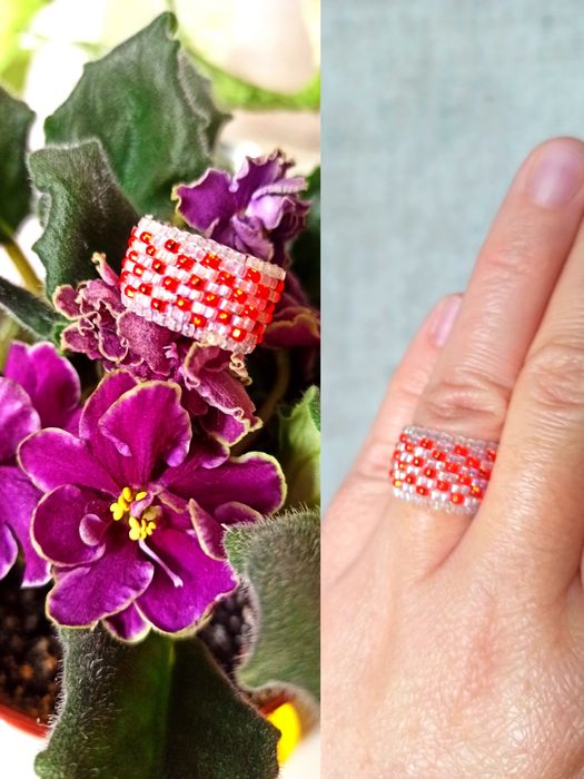 Выберите бисер и нитку, которые будут сочетаться с вашим кольцом и общим стилем украшения.
