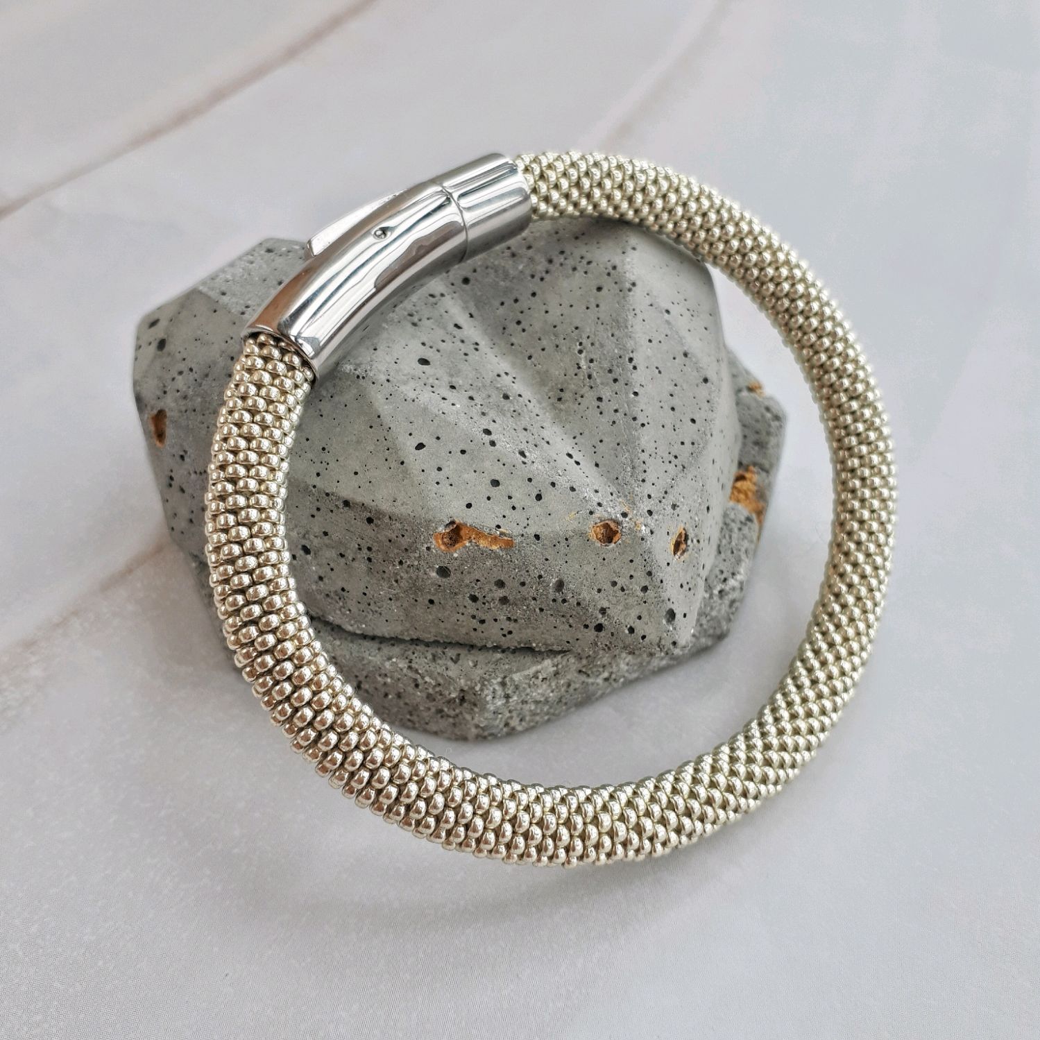 Обратите внимание на размер бисера: его важно выбрать правильный, чтобы браслет оказался комфортным.