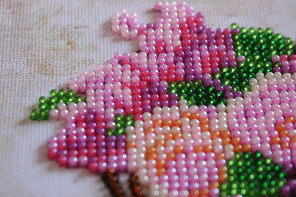 Для создания реалистичных лепестков используйте разные оттенки бисера.