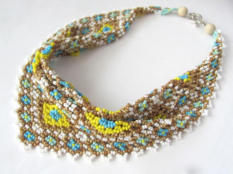 Не спешите и не торопитесь - создавать колье-косынку из бисера требует терпения и внимания к деталям.
