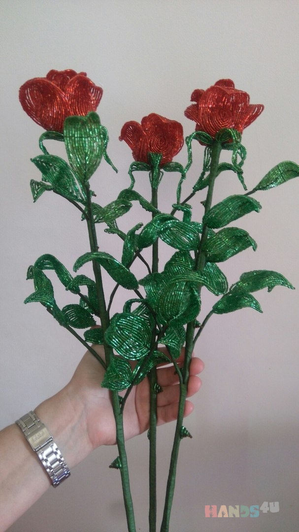 Подберите различные размеры и формы бусин: это добавит объема и разнообразия вашему бисерному букету.