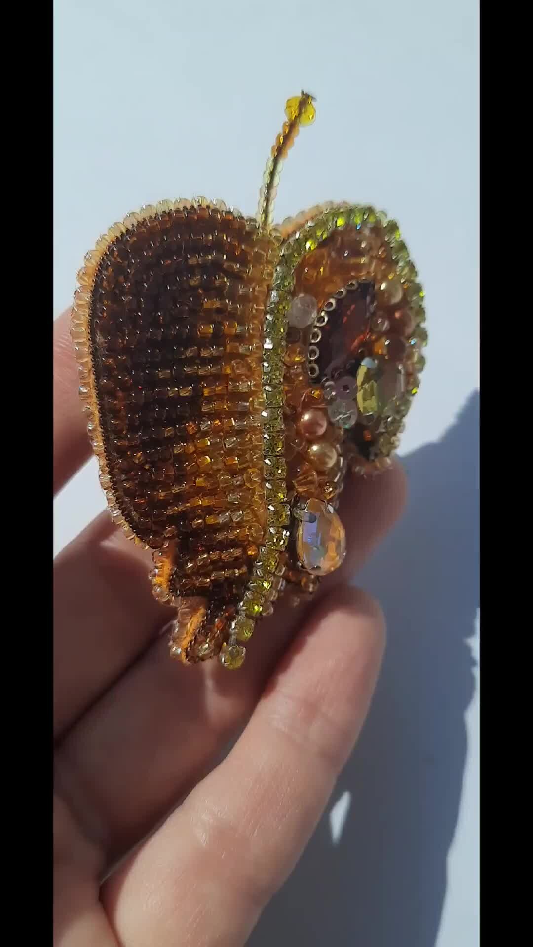 мастер класс по вышивке броши из бисера своими руками листок осенний, уроки в формате видео