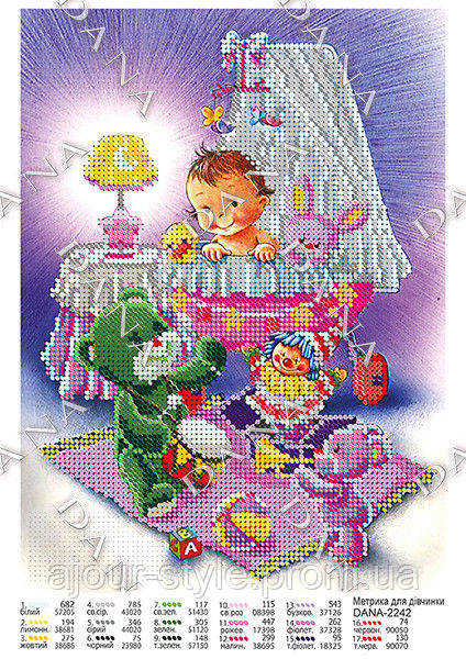 Метрика для дівчинки, вишивка бісером