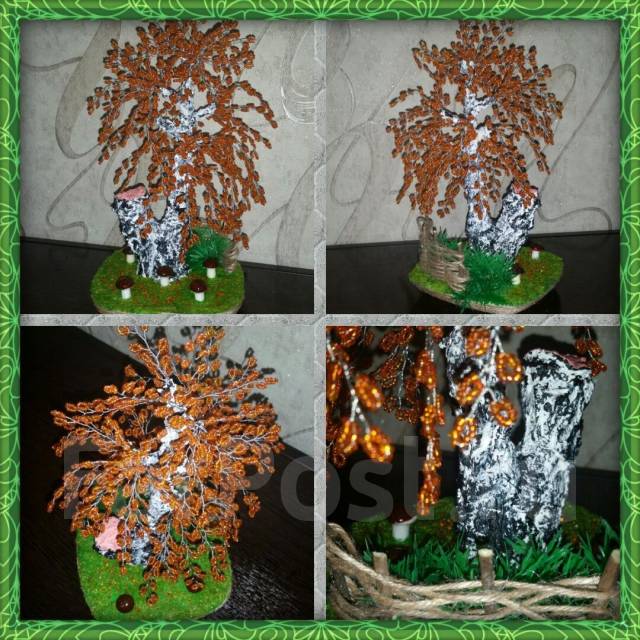 Дерево из бисера. Осенняя береза из бисера.