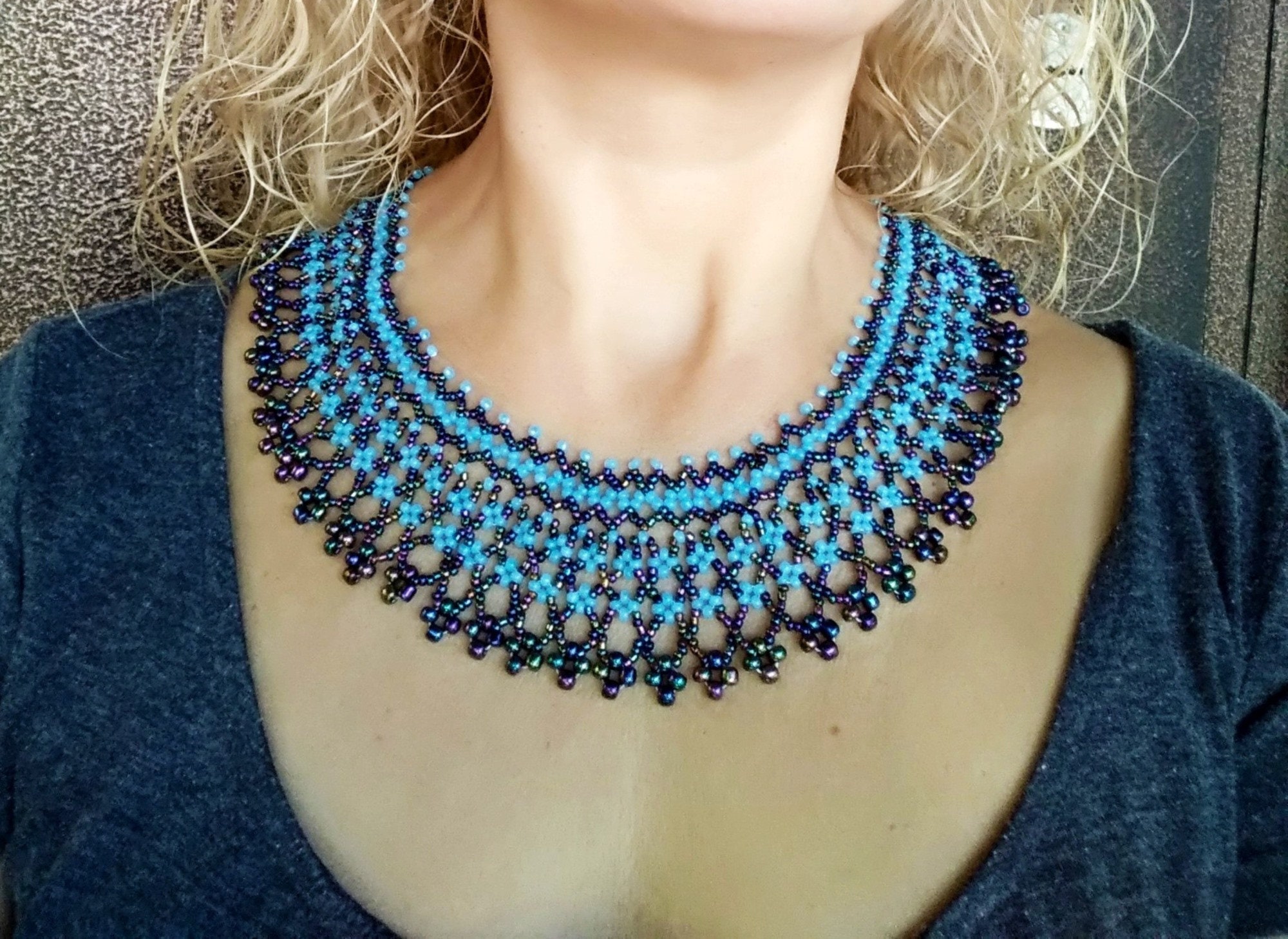 Сочетайте колье из бисера с однотонной одеждой, чтобы подчеркнуть его красоту и уникальность.