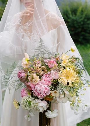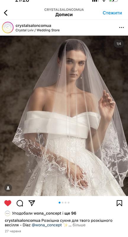 Фата свадебная, вышитая бисером. Воздушная двухъярусная.