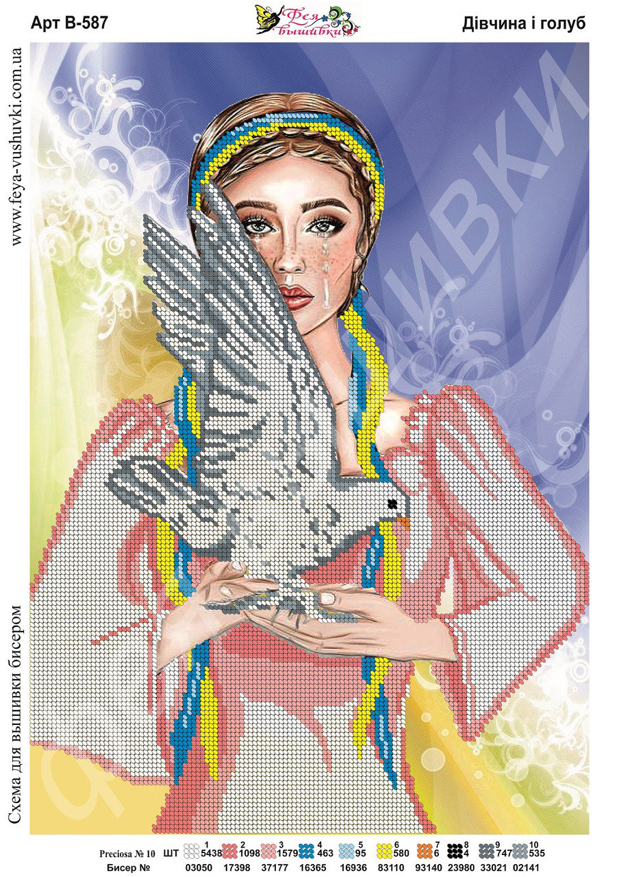 Начинайте вышивать бисером по схеме, следуя инструкции и особым знакам на схеме. Отшивайте каждый бисер тугим стежком, чтобы он был надежно закреплен на ткани.