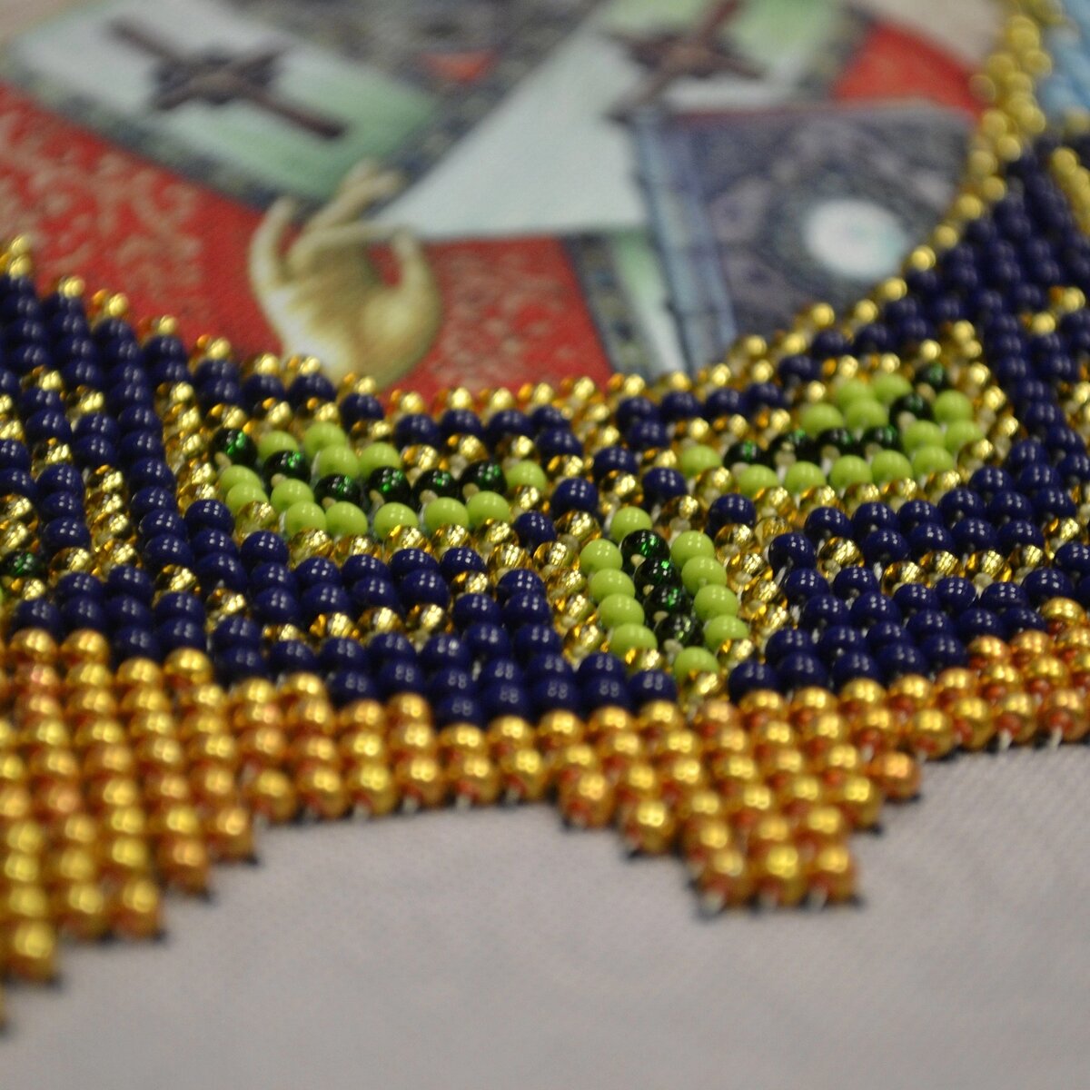 При вышивке бисером важно соблюдать правильную натяжку нитей, чтобы изображение получилось ровным и аккуратным.