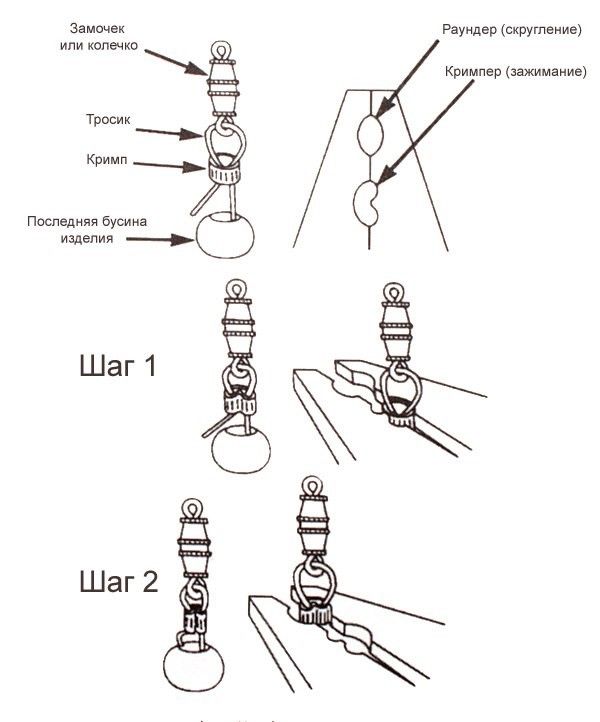 6 способов как приделать замочек к бусам на тросике