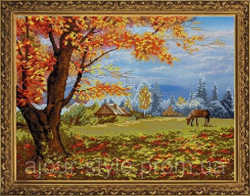 Используйте разные оттенки желтого, оранжевого и красного бисера, чтобы передать яркость и теплоту осенних листьев.
