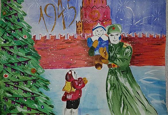 Помогите ребенку выбрать тему для рисунка, например, домик Деда Мороза, снежинки или санки с подарками