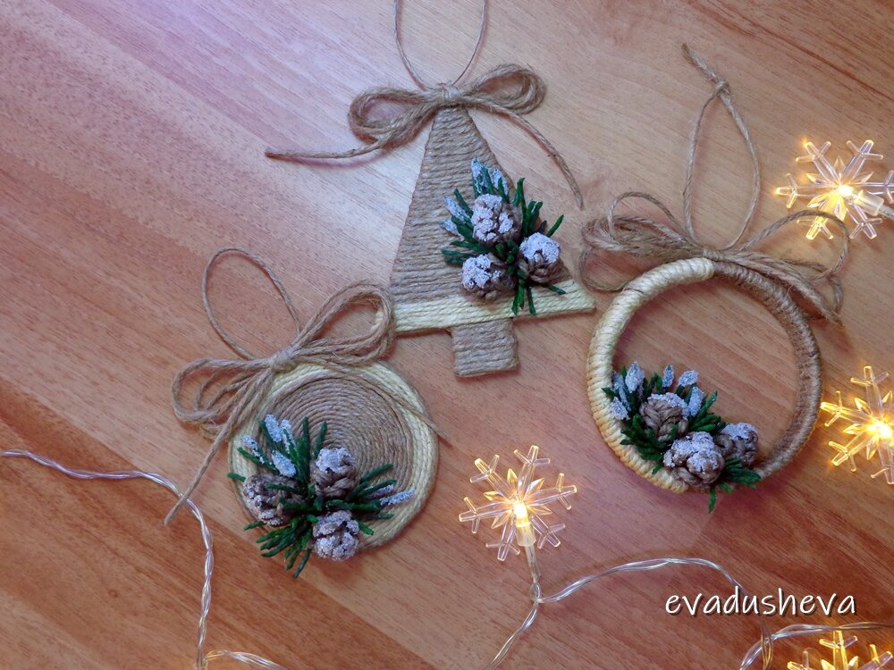 Идеи и советы по изготовлению елочных украшений из джута своими руками
