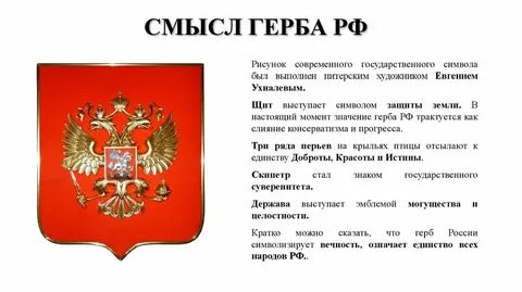 Описание: Рассмотрите с фотографиями и маленькими видеоуроками каждый элемент герба России: орла, цветы, звезды, короны и т.д.