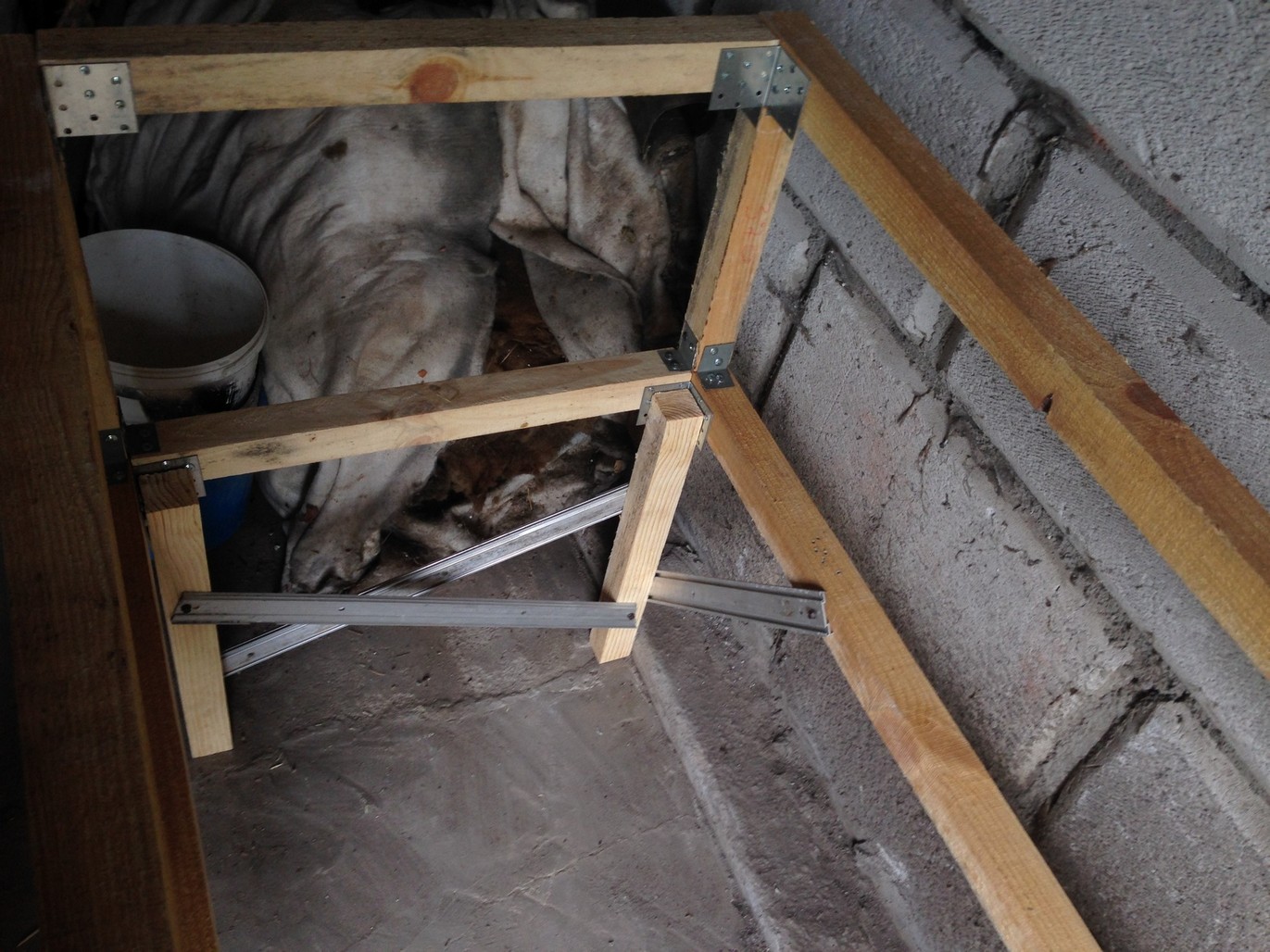 Используйте старые палетки или деревянные ящики в качестве основы пола.