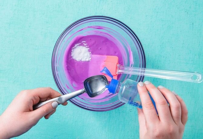 Подберите соотношение ингредиентов для получения желаемой консистенции: добавляйте клей и боракс постепенно, чтобы достичь нужной липкости.